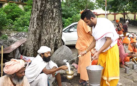 Small quantity of milk produced in our gaushala is freely distributed to saints, gausewaks, and ashrams...